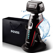 四刀头、1小时充电、全⾝水洗、鬓⾓角刀、五级电量显示、充电底座